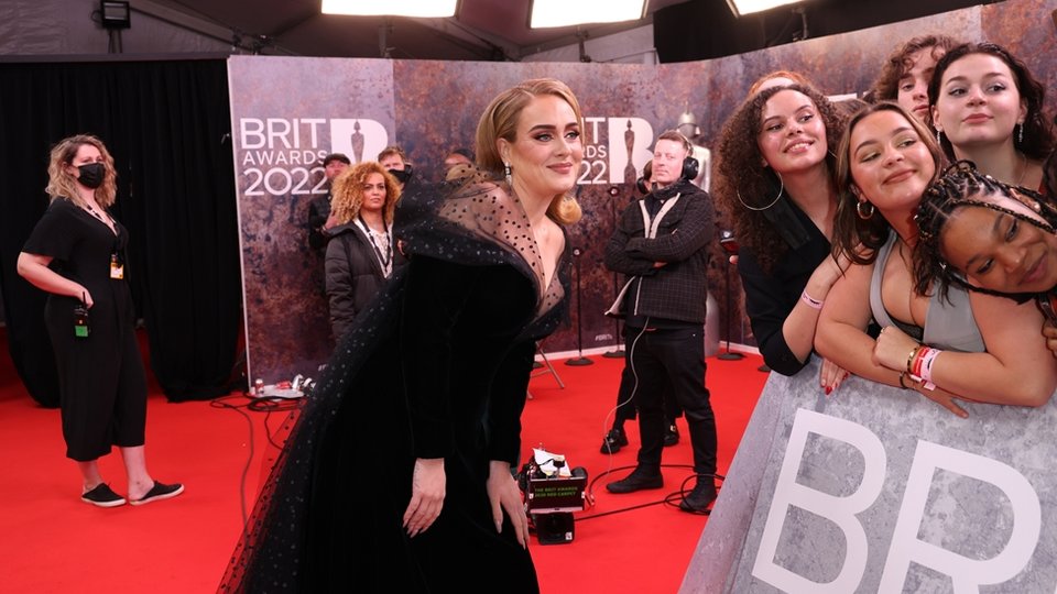 Adele отримувала нагороди у короткій чорній сукні з оксамиту від українського бренду Marianna Senchina. Фото Getty Images