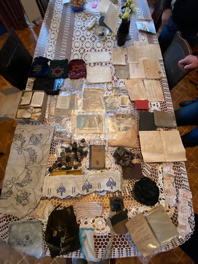 Крім документів, на аукціоні продавали нарукавні пов’язки євреїв, мезузу з оригінальною вкладкою, тфіліни з листами Тори, фотографії, листівки, релігійні сувої, а також дитячі вишиті комірці. За документами, каже Арсеній Герасименко, можна точно припустити, що вони належали львів’янам. Речі були поділені на два лоти: перший викупили у листопаді, другий – у грудні, заплативши загальну суму понад 45 тис. грн.