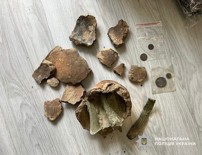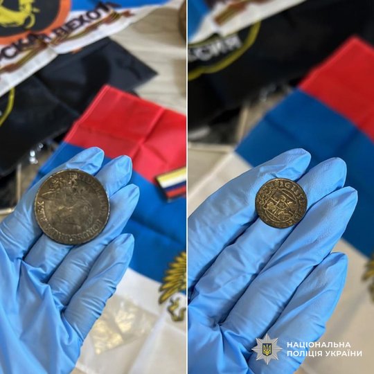 «Під час слідчих дій поліцейські виявили предмети з археологічних польових досліджень, фрагменти артефактів та колекційні монети, зокрема й часів Римської Імперії. Окрім цього, велику кількість предметів з російською символікою та символікою “ЛНР”, “ДНР” та “Новороссії”», – зазначили правоохоронці.
