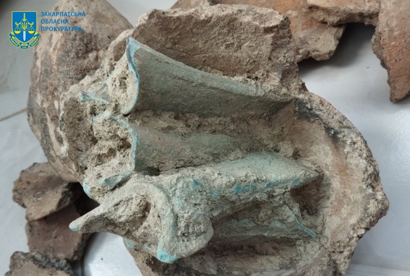 «За оперативними даними, чоловік знайшов горщик із бронзовими сокирами у передмісті Ужгорода, на території нерухомої пам’ятки культури – поселення залізного віку та римського часу. А проведення будь-яких розкопок на об’єкті археологічної спадщини заборонене та карається законом», – зазначиили у прокуратурі.
