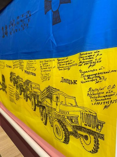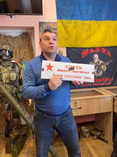 Володимир розповів, що після Революції Гідності і від початку військових дій на Донбасі він разом з однодумцями постійно допомагає бійцям, які воюють на Сході. Вже 7 років Володимир Голоднюк возить передачі та благодійну допомогу на фронт. А в подарунок військові надсилають у Збараж пам’ятні для них речі – бойові стяги, листи від дітей з побажаннями.