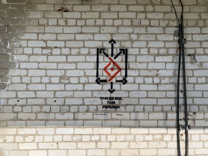 На двох локаціях у Степногірську Нікіта Тітов зобразив знак Руху Опору. У центрі композиції – серце спротиву. Від знаку розходяться стрілки, які символізують шляхи людей, які чинять опір в тилу ворога. Стрілки утворюють образ тризуба.
