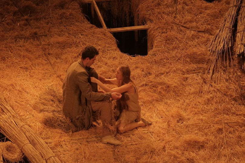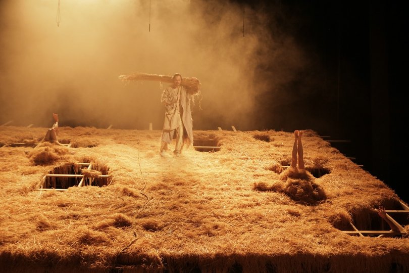 Вперше на сцені театру імені Марії Заньковецької вперше ставив виставу не тільки Давид Петросян, також вперше сценографка та художниця по костюмах Даниїла Колот. Тут варто зауважити, що сценографія у цій виставі є напрочуд вдалою та виразною. Складна конструкція може бути водночас стріхою, полем, тою самою землею, що є в центрі повісті Кобилянської. Крізь отвори проростає збіжжя та герої.